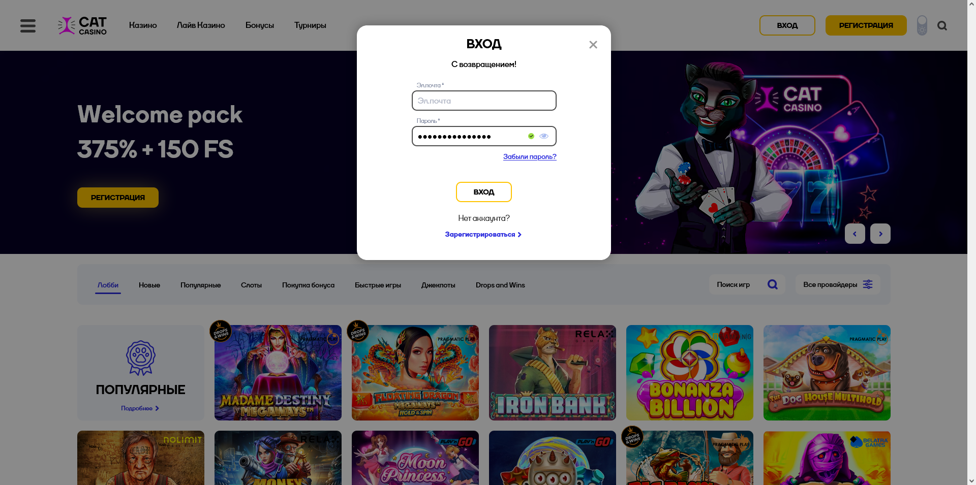 Данный скрипт представлен в оформлении оригинального сайта Cat Casino.